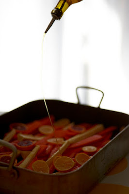 - oven roasted root vegetables, in this case parsnips and carrots, caramalized to sweet perfection ...